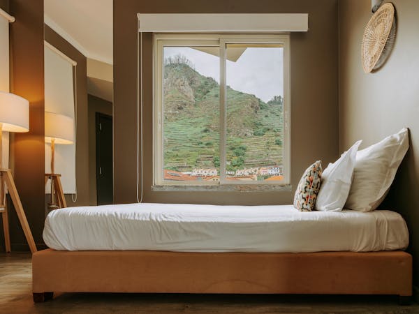 Experience ultimate relaxation in our top-floor suite with private jacuzzi and stunning views of the natural pools.